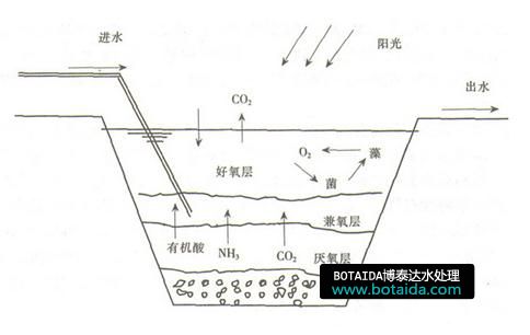 在傳統(tǒng)基礎(chǔ)上改進的高效藻類穩(wěn)定塘比傳統(tǒng)的穩(wěn)定塘有更多的生物,并增加攪拌裝置,促進污水混合;調(diào)節(jié)塘內(nèi)的氧氣和二氧化碳的濃度,及水溫和水質(zhì),從而提高有機物、氮和磷的去除率。高效藻類穩(wěn)定塘受光照、溫度、水深和塘內(nèi)流速的影響大。