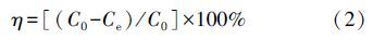 式中,C0、Ce分別為Cu2+和Pb2+溶液的初始濃度和吸附后的平衡濃度(mg · L-1).