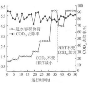2.1.1 進水容積負荷對 CODCr 去除率的影響