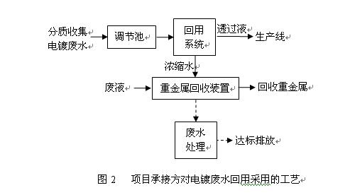 經(jīng)過多年電鍍廢水及涉重金屬的研究及工程實(shí)踐,摸索出一套成熟穩(wěn)定的電鍍廢水回用技術(shù)(連續(xù)錯(cuò)流抗污染多級(jí)膜法回用),把電鍍廢水分質(zhì)收集,單獨(dú)膜法回用,回用水可分別用到對(duì)應(yīng)的生產(chǎn)線或作為自來水使用;目前項(xiàng)目承接方采用的回用理念是“先回用后處理”,把廢水先進(jìn)行分質(zhì)收集,單獨(dú)膜法回用,回收率≥85%,濃縮后的廢水中重金屬離子濃度可提升到100倍以上,對(duì)該濃縮廢水可通過重金屬回收裝置(專利號(hào):CN201010578758.5)進(jìn)行重金屬的提取,大大提高了重金屬的回收效率,回收重金屬的同時(shí),也減輕后需廢水處理的負(fù)荷。