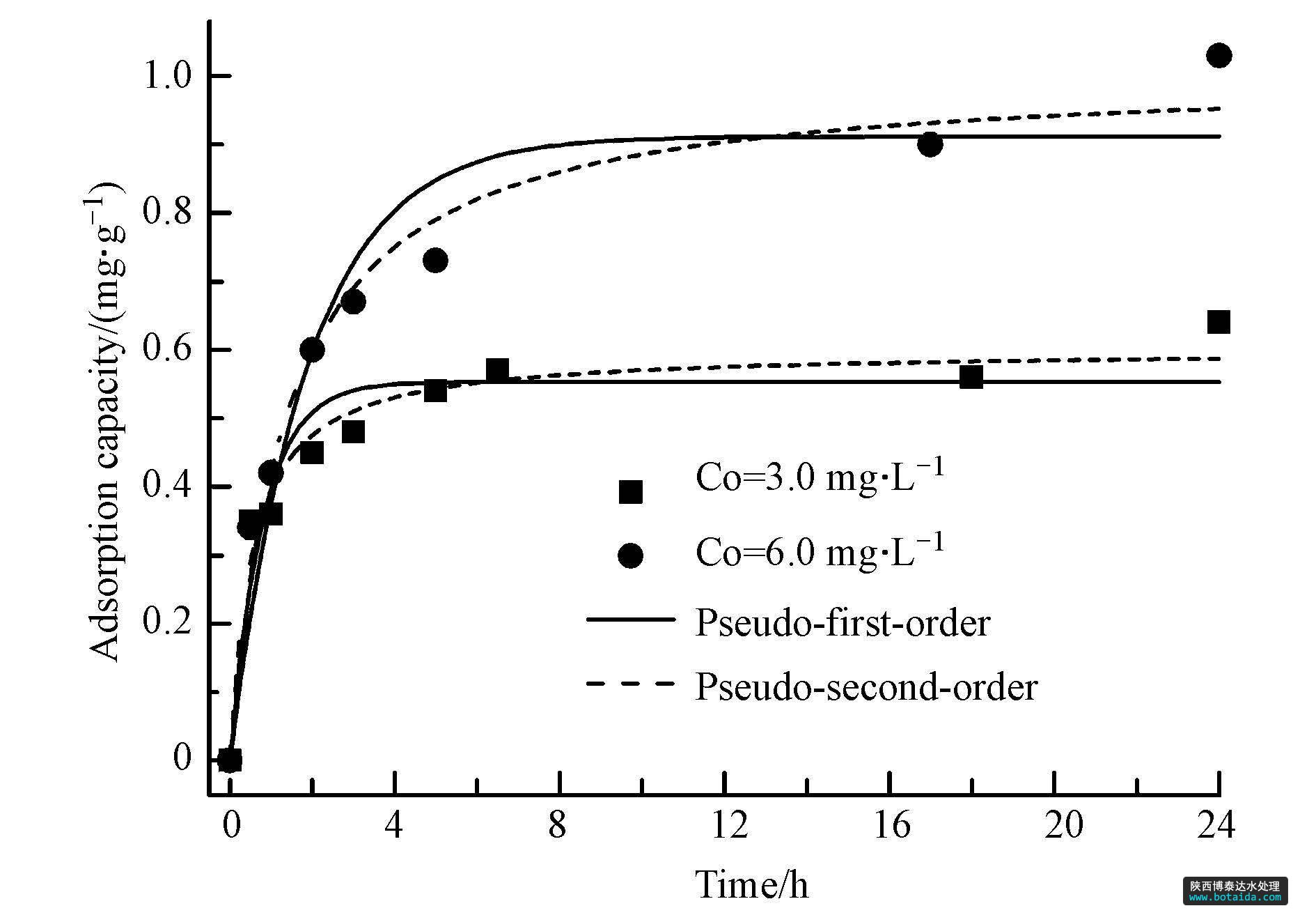 式中,qt和qe分別為t時刻和平衡態(tài)時的吸附量(mg · g-1),k1為準一級吸附速率常數(shù)(h-1),k2為準二級吸附速率常數(shù)(g · mg-1 · h-1).