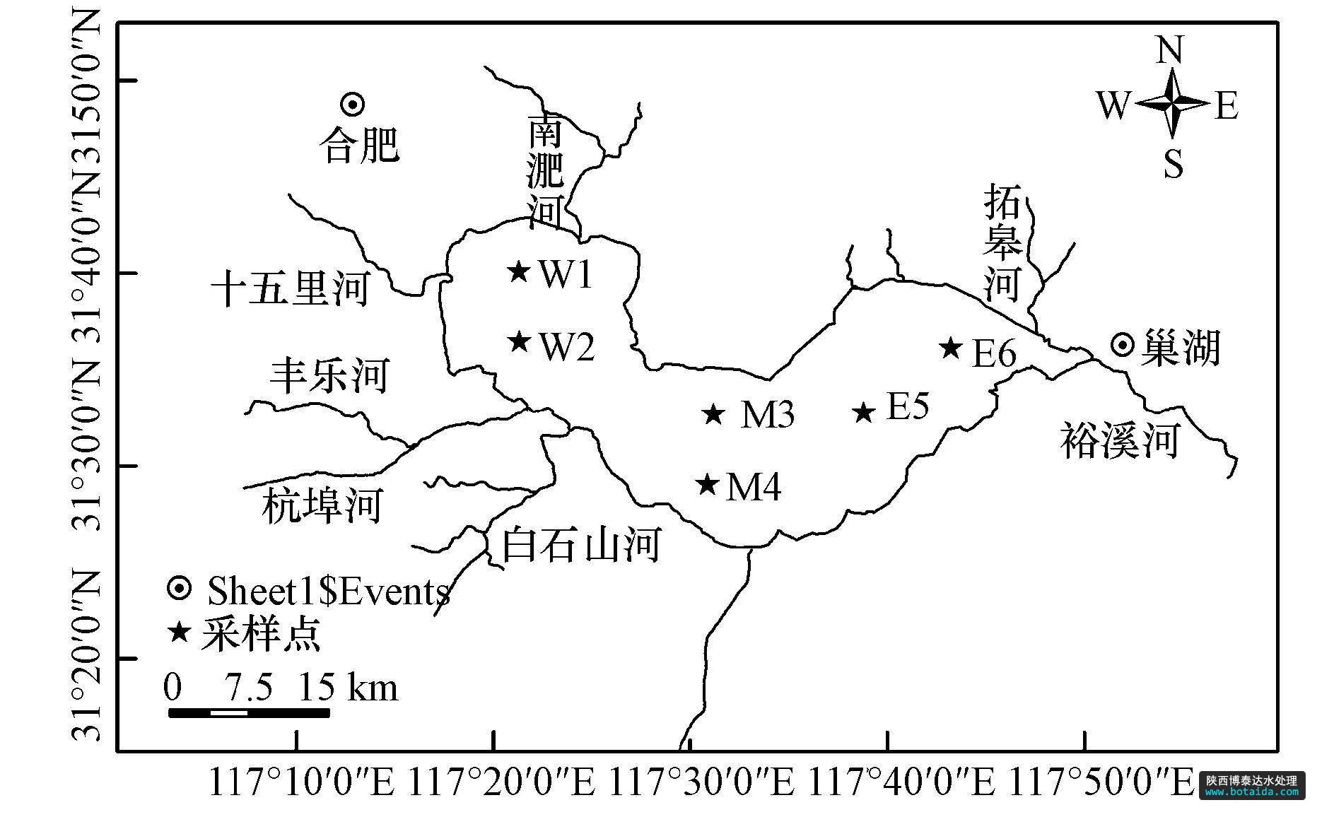 圖1 巢湖湖區(qū)采樣布點示意圖
