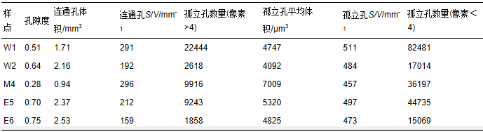 表3 巢湖W1點不同深度沉積物孔隙群統(tǒng)計表(3.375 mm3,250×250×250像素)