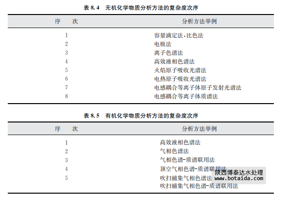 ● 如果要將某個實驗室提交的分析結(jié)果與其他實驗室的結(jié)果用數(shù)字表示的標準進行比 較,那么它們最好不帶有任何系統(tǒng)誤差。盡管實際上這是不可能的,但每個實驗室應(yīng)選擇系 統(tǒng)誤差已充分評價并處于可接受的低水平的方法。 分析方法根據(jù)其技術(shù)復(fù)雜程度的定性排序如表8.4(對于無機化學物質(zhì))和表8.5所示(對于有機化學物質(zhì))。表中分組的化學物質(zhì)的分析方法差別很大,次序越高,方法所需的設(shè) 備越高級或操作越復(fù)雜。通常,越高的次序也意味著越高的總經(jīng)濟成本。