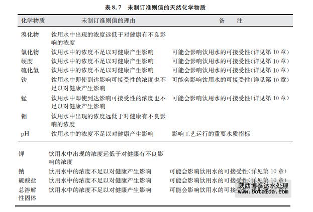 表8.7列舉了尚未制訂準則值的天然化學(xué)物質(zhì),并在表中說明了理由,其資料概覽見第 12章。