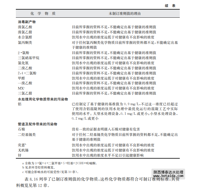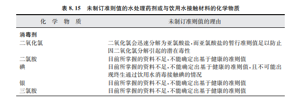 表8.15列舉了尚未制訂準則值的化學物質,并在表中說明了理由,其資料概覽見第12章。
