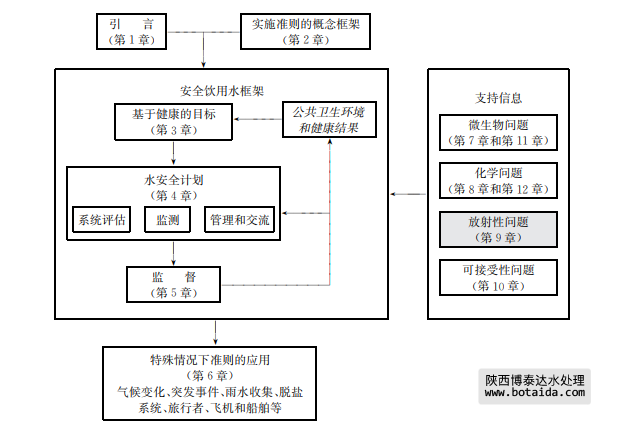 對于健康風(fēng)險評價來說,本準(zhǔn)則對天然放射性同位素和人工放射性同位素同樣適用。但 對于風(fēng)險管理,二者還是有些差別,因?yàn)閺睦碚撋?,人工放射性同位素在進(jìn)入供水系統(tǒng)之前是 可控的。相反,對于天然放射性同位素來說,在消費(fèi)者使用前,可在任何地點(diǎn)或多個地點(diǎn)都有 進(jìn)入供水系統(tǒng)的潛在可能性。因此,在飲用水中天然放射性同位素往往較難實(shí)施控制。