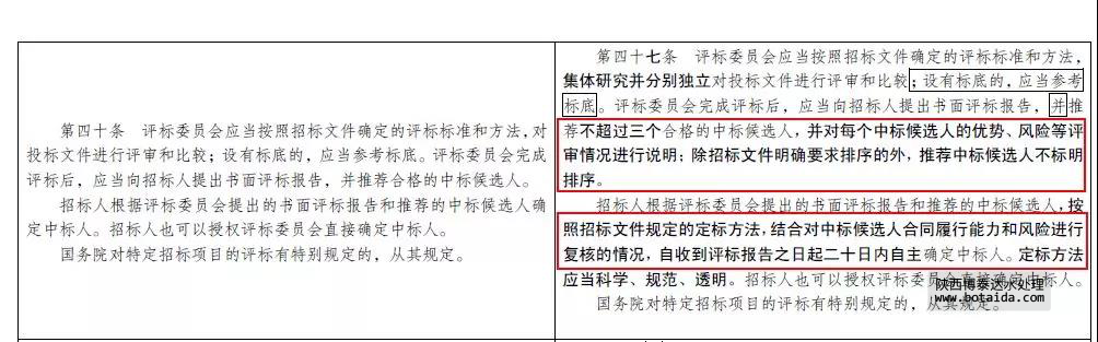 這意味著甲方有著更大的自主選擇權(quán),而評標(biāo)委員會只推薦三個(gè)中標(biāo)候選人,而且不用排序。也就是說,不會有第一中標(biāo)候選人、第二中標(biāo)候選人、第三中標(biāo)候選之說。這也打破了評標(biāo)委員會推薦的第一中標(biāo)候選人默認(rèn)為中標(biāo)人的長期慣例。甲方只需要在三個(gè)中標(biāo)候選人當(dāng)中,自主確定中標(biāo)人。