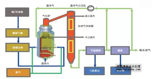 二是以SHELL(殼牌)煤氣化工藝、TPRI西安熱工院兩段爐工藝、航天煤氣化工藝、GSP煤氣化工藝等為代表的粉煤加壓氣化技術(shù)路線。