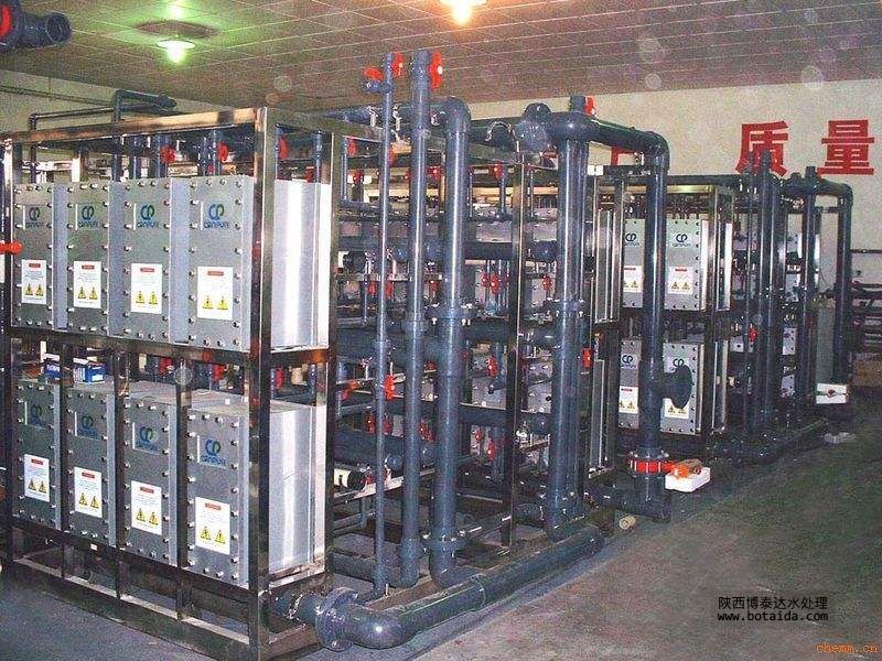 此設(shè)備將電滲析技術(shù)和離子交換技術(shù)融為一體。通過離子膜對水中離子進(jìn)行選擇,再通過交換樹脂對離子進(jìn)行交換,從而在電場的作用下實(shí)現(xiàn)水中離子的定向遷移,以達(dá)到到水的深度凈化除鹽并使樹脂進(jìn)行連續(xù)再生的過程。
