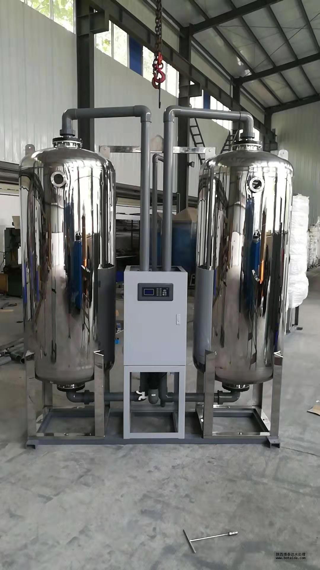 2.在全自動(dòng)軟化水設(shè)備工作一段時(shí)間后,樹脂的交換能力被水中的鈣鎂離子所飽和時(shí),此時(shí)由鹽罐自動(dòng)給水,用鹽水對(duì)離子交換樹脂進(jìn)行再生處理,以恢復(fù)樹脂的交換能力。