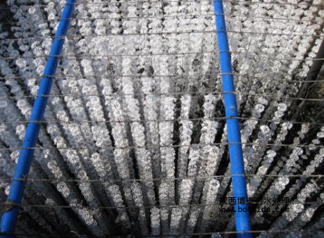 (2)表面曝氣設(shè)備:是利用馬達直接帶動軸流式葉輪,將廢水由導(dǎo)管經(jīng)導(dǎo)水板向四周噴出并形成一薄片(或水滴狀)的水幕,在飛行途中和空氣接觸形成水滴,在落下時撞擊液面,液面產(chǎn)生亂流及大量的氣泡,使水中含氧增加。