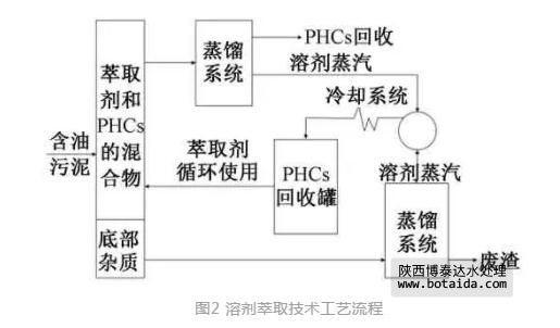 溶劑萃取法選擇一種有機(jī)溶劑作為萃取劑,利用“相似相溶”原理,將PHCs溶解并使其與含油污泥中其他組分分離,然后將混合物蒸餾以分離出PHCs和萃取劑,比離心分離法更適用于高含油率油泥、老化油泥等一些處理難度大、回收利用價(jià)值高的處理單元。