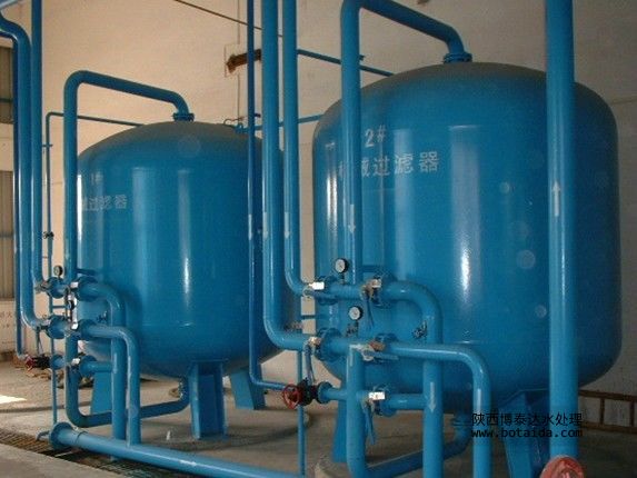過(guò)濾器在剛投入使用時(shí),過(guò)濾效果往往不是很好,是因?yàn)樵趧傞_(kāi)始時(shí) 過(guò)濾器沒(méi)有形成“架橋”,所謂“架橋”是指由水中懸浮物組成一道攔截網(wǎng),該攔截網(wǎng)攔截與其粒徑相當(dāng)?shù)膽腋∥铮^而攔截粒徑較小的懸浮物,形成一個(gè)先攔截大顆粒物質(zhì)、后攔截小顆粒物質(zhì)的反粒度式過(guò)濾過(guò)程。過(guò)濾器一旦形成“架橋”,過(guò)濾效果非常好,隨著投入運(yùn)行的時(shí)間加長(zhǎng),過(guò)濾精度越來(lái)越高,攔截網(wǎng)越來(lái)越厚,進(jìn)出口壓差越來(lái)越大,當(dāng)壓差達(dá)到1kg/cm2 應(yīng)對(duì)過(guò)濾器進(jìn)行反沖洗,在反沖洗的過(guò)程中最好配有壓縮空氣對(duì)石英砂擦洗,一般的工程經(jīng)驗(yàn)是直徑小于2500mm 的機(jī)械過(guò)濾器不需用壓縮空氣;而直徑大于 2500mm 的機(jī)械過(guò)濾器必需用壓縮空氣進(jìn)行擦洗才能夠達(dá)到滿意的清洗效果;反沖洗流量一般為過(guò)濾器的設(shè)計(jì)容量的 3-4 倍。