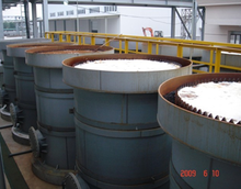 催化微電解是在不通電的情況下,利用微電解設備中填充的微電解填料產生“原電池”效應對廢水進行處理。當通水后,在設備內會形成無數的電位差達1.2V 的“原電池”。“原電池”以廢水做電解質,通過放電形成電流對廢水進行電解氧化和還原處理,以達到降解有機污染物的目的。在處理過程中產生的新生態(tài)[.O H] 、[H] 、[O]、Fe2+ 、Fe3+等能與廢水中的許多組分發(fā)生氧化還原反應,比如能破壞有色廢水中的有色物質的發(fā)色基團或助色基團,甚至斷鏈,達到降解脫色的作用;生成的Fe2+ 進一步氧化成Fe3 +,它們的水合物具有較強的吸附- 絮凝活性,特別是在加堿調pH 值后生成氫氧化亞鐵和氫氧化鐵膠體絮凝劑,它們的絮凝能力遠遠高于一般藥劑水解得到的氫氧化鐵膠體,能大量絮凝水體中分散的微小顆粒、金屬粒子及有機大分子。該工藝具有適用范圍廣、處理效果好、成本低廉、處理時間短、操作維護方便、電力消耗低等優(yōu)點,可廣泛應用于工業(yè)廢水的預處理和深度處理中。應用廢水種類:染料廢水、焦化廢水、醫(yī)藥廢水、農藥廢水、樹脂廢水、助劑廢水、制革廢水、電鍍廢水、造紙廢水、淀粉廢水、大蒜廢水、垃圾滲濾液等工業(yè)類廢水。